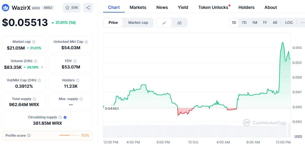 И если вам интересно, то токен WRX тоже празднует небольшую победу. После объявления токен взлетел почти на 21% за один день. По последним данным, он торгуется по скромной цене $0.05513, с рыночной капитализацией в $21.05 миллиона и разблокированной рыночной капитализацией в $54.03 миллиона. 🤑